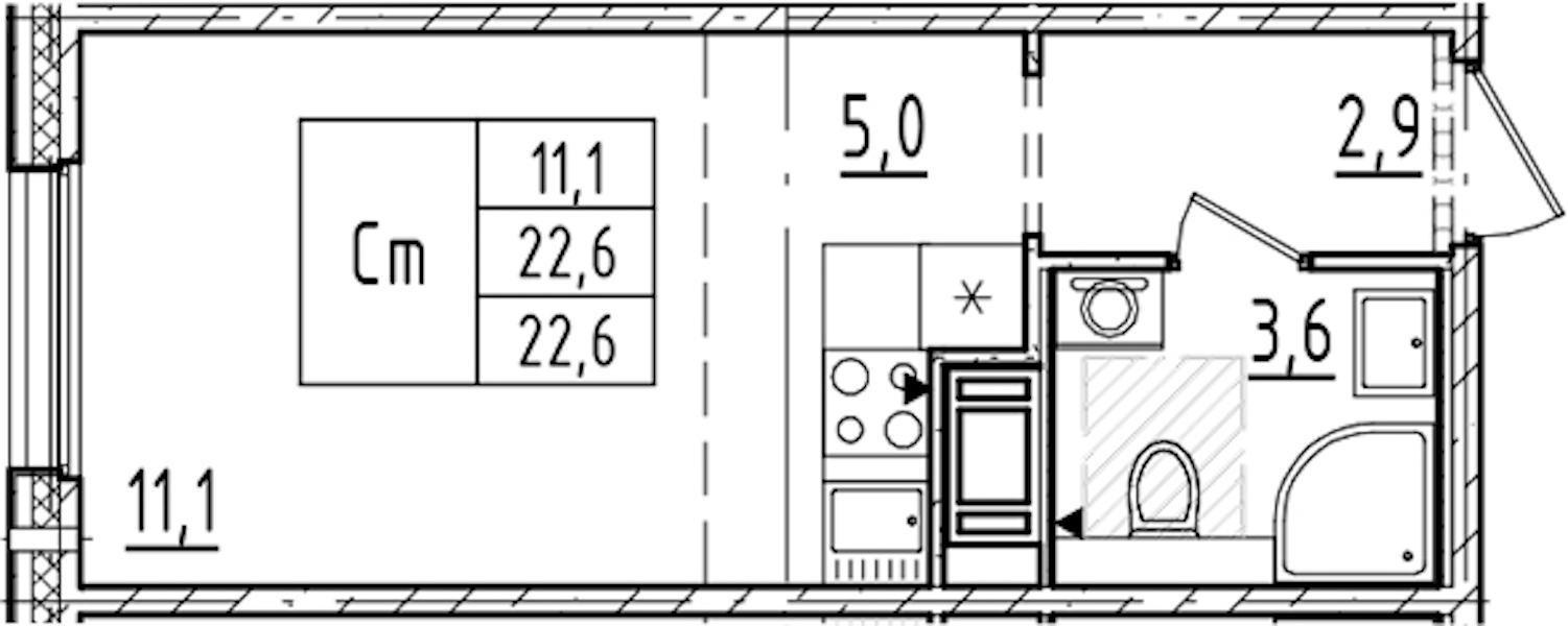 Квартира-студия на 4-ом этаже 22,6 кв.м