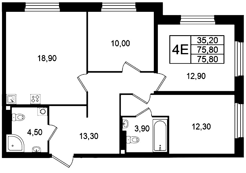 Трёхкомнатная квартира на 3-ем этаже 75,8 кв.м