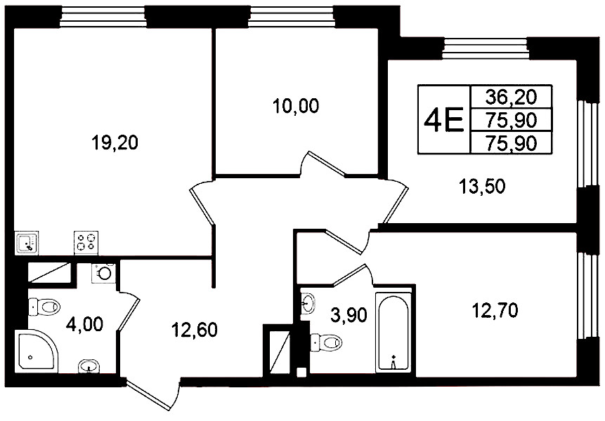 Трёхкомнатная квартира на 11-ом этаже 75,9 кв.м