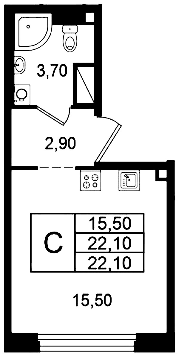 • Площадь22,1 м2