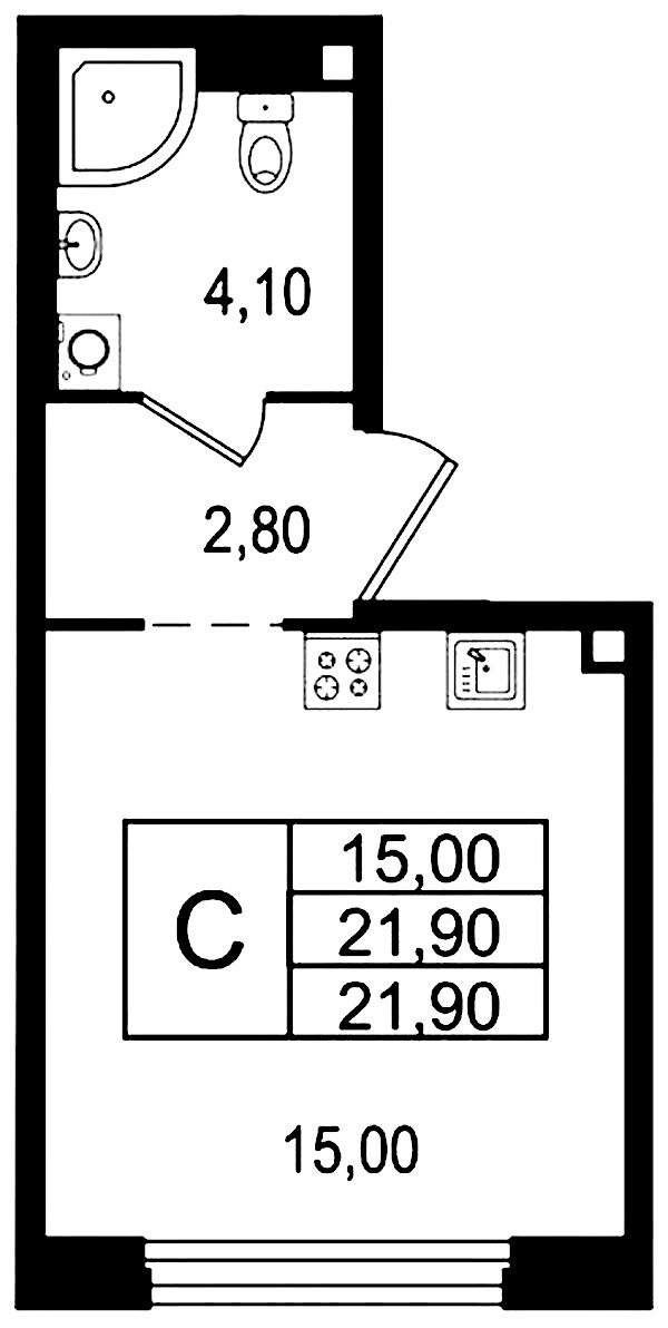 • Площадь21,9 м2