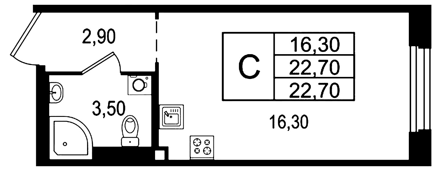 • Площадь22,7 м2
