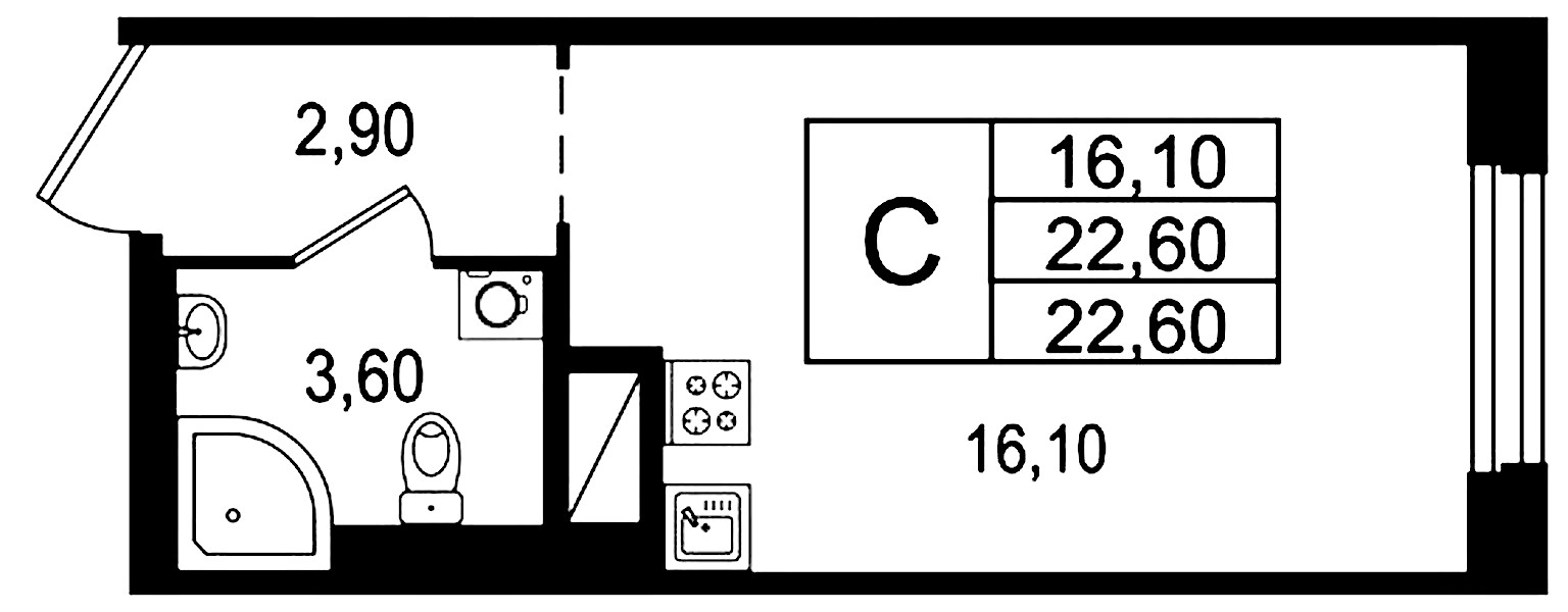 • Площадь22,6 м2
