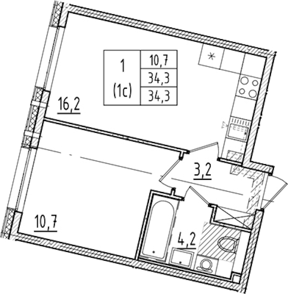 - Площадь34,3 м2