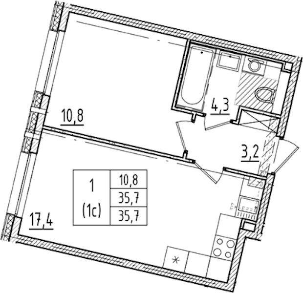 - Площадь35,7 м2