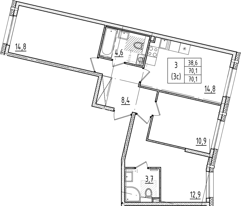 - Площадь70,1 м2
