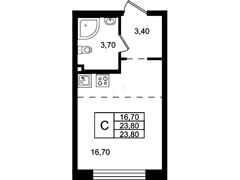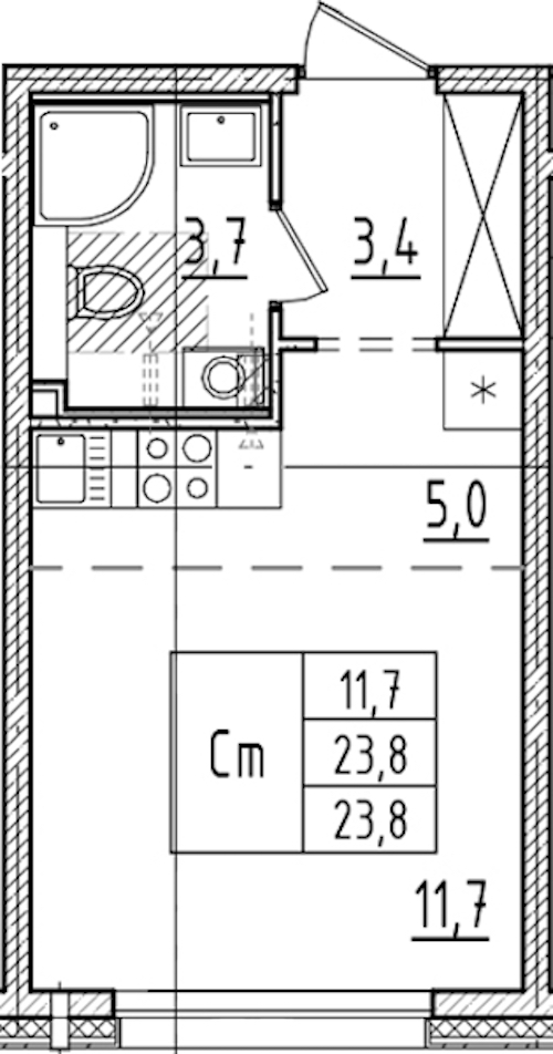 - Площадь23,8 м2