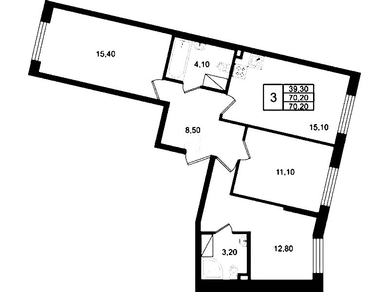 - Площадь70,2 м2