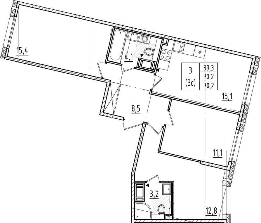 - Площадь70,2 м2