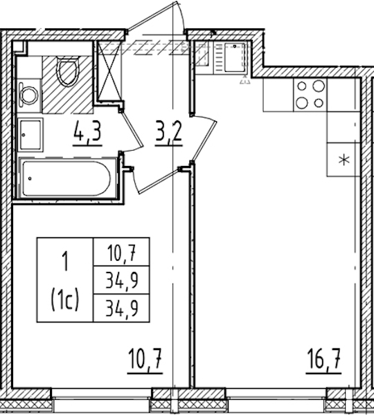 • Площадь34,9 м2