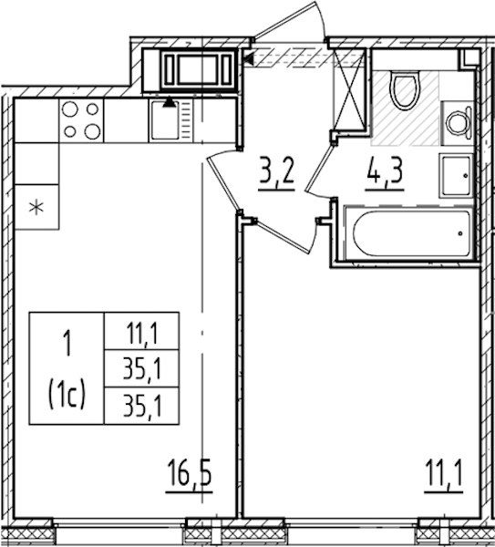 - Площадь35,1 м2