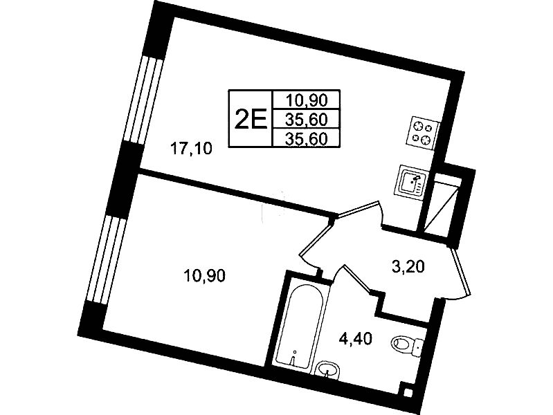 - Площадь35,6 м2