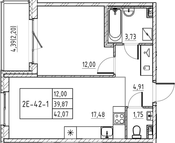 - Площадь42,07 м2
