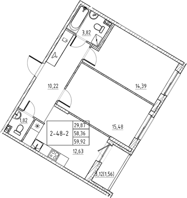 - Площадь59,92 м2