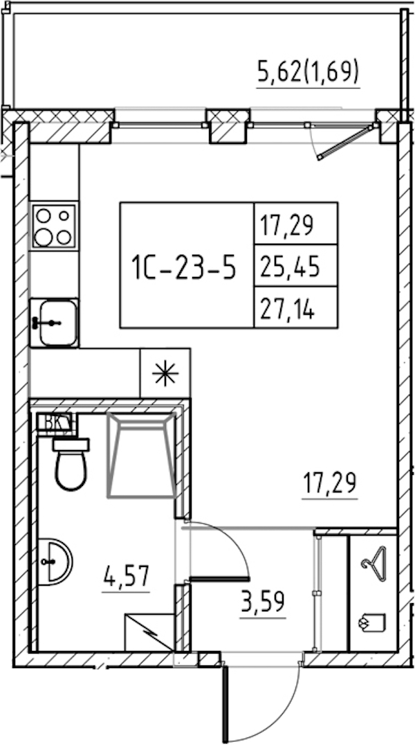 - Площадь27,14 м2