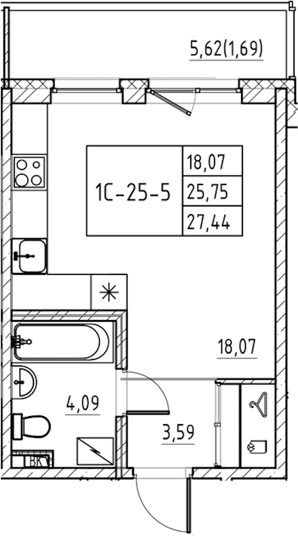 - Площадь27,44 м2