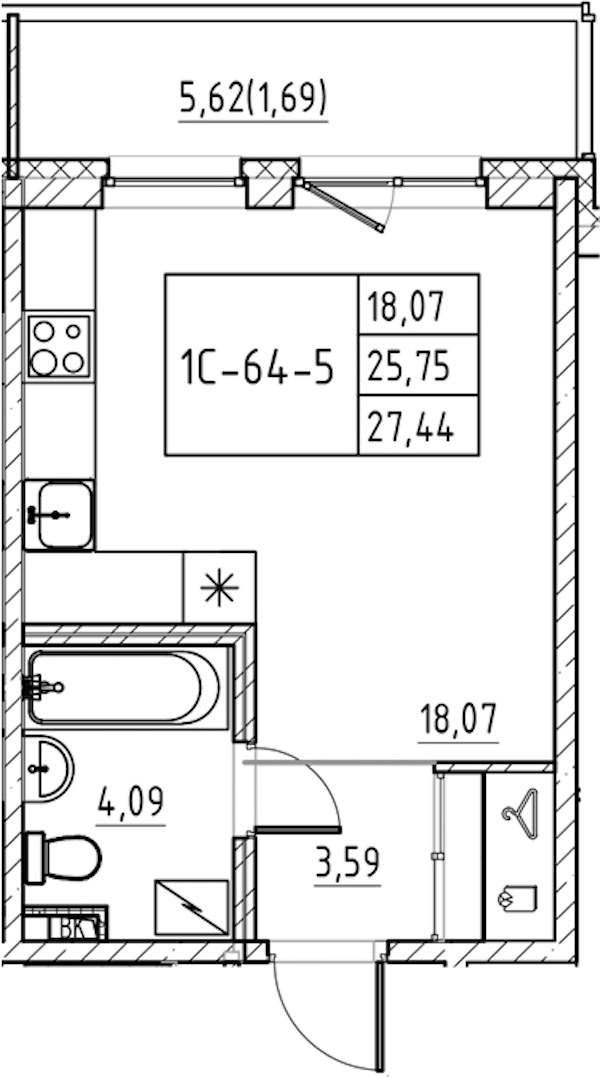 - Площадь27,44 м2