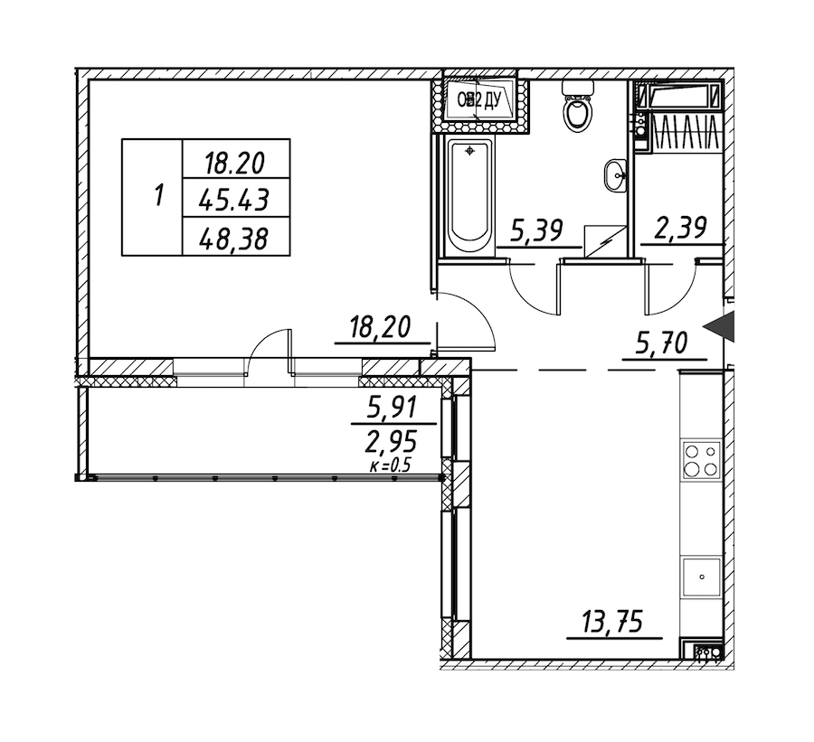 - Площадь48,38 м2