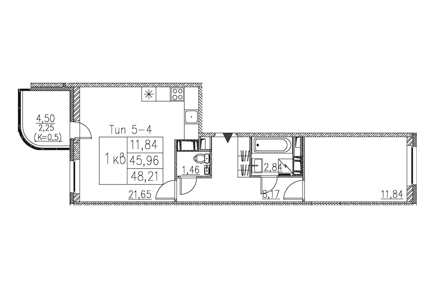 - Площадь48,21 м2
