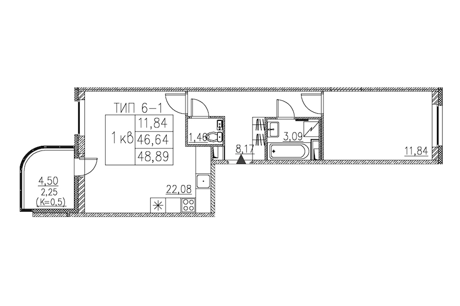 - Площадь48,89 м2