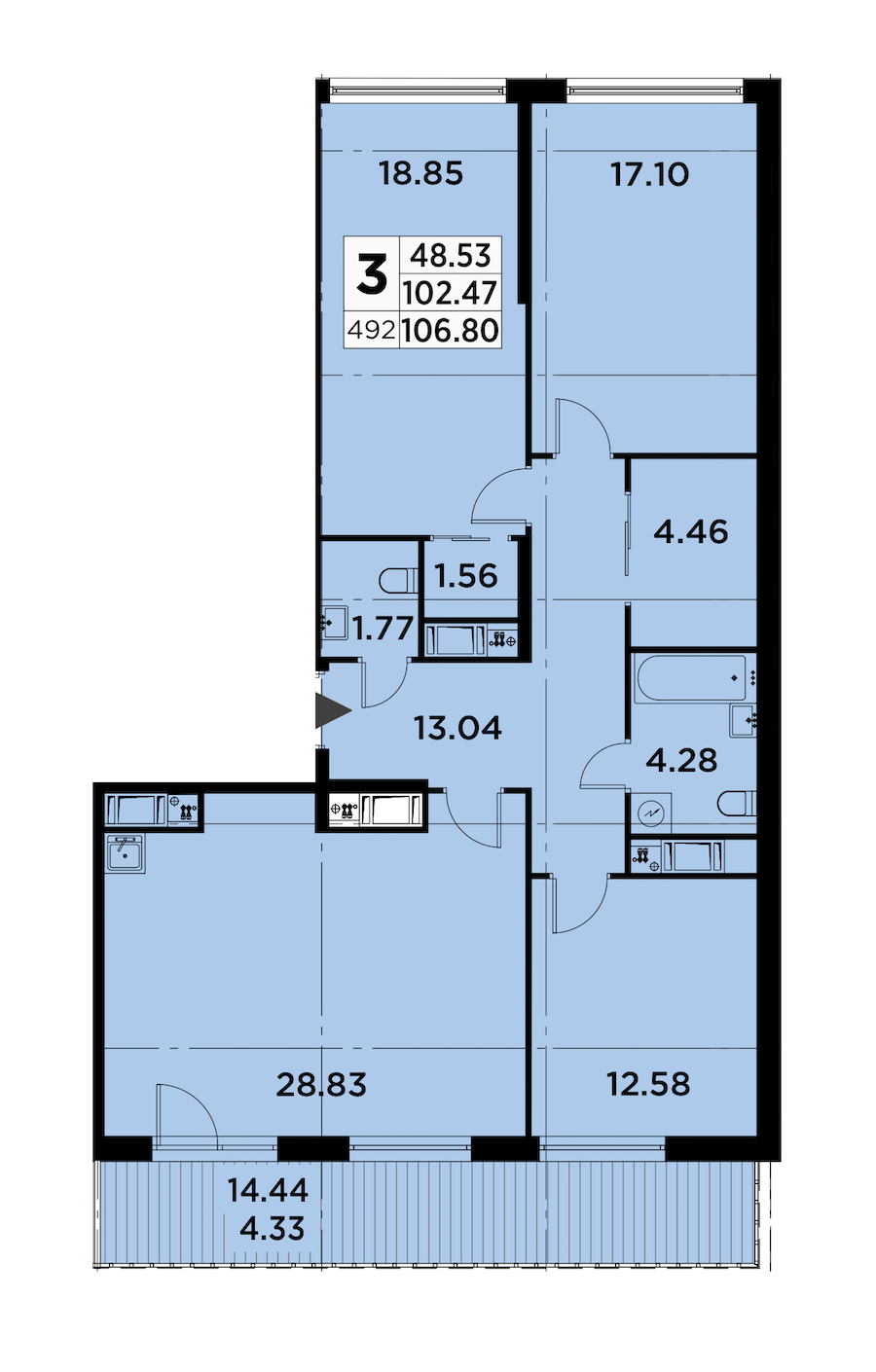 - Площадь106,8 м2