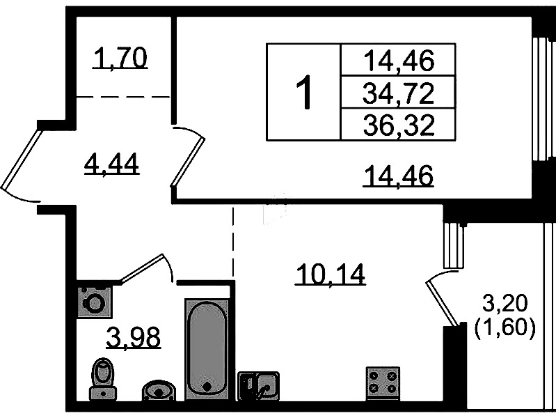 - Площадь кухни10,14 м2