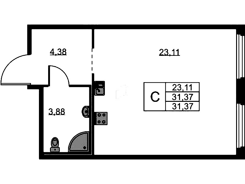 Квартира-студия на 1-ом этаже 31,37 кв.м