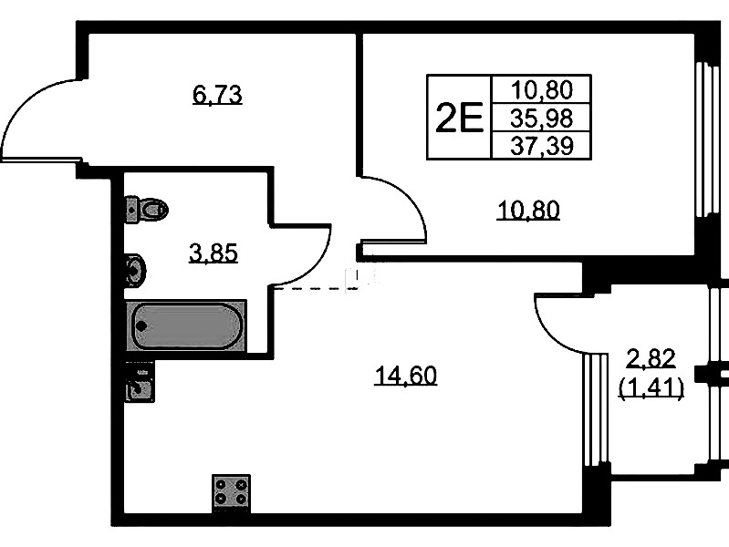 Однокомнатная квартира на 13-ом этаже 37,49 кв.м