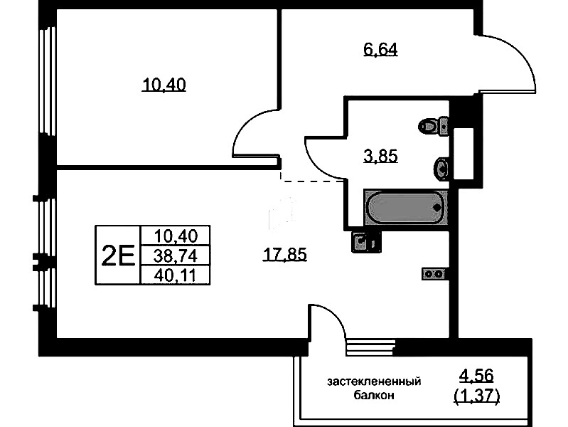 - Площадь40,11 м2