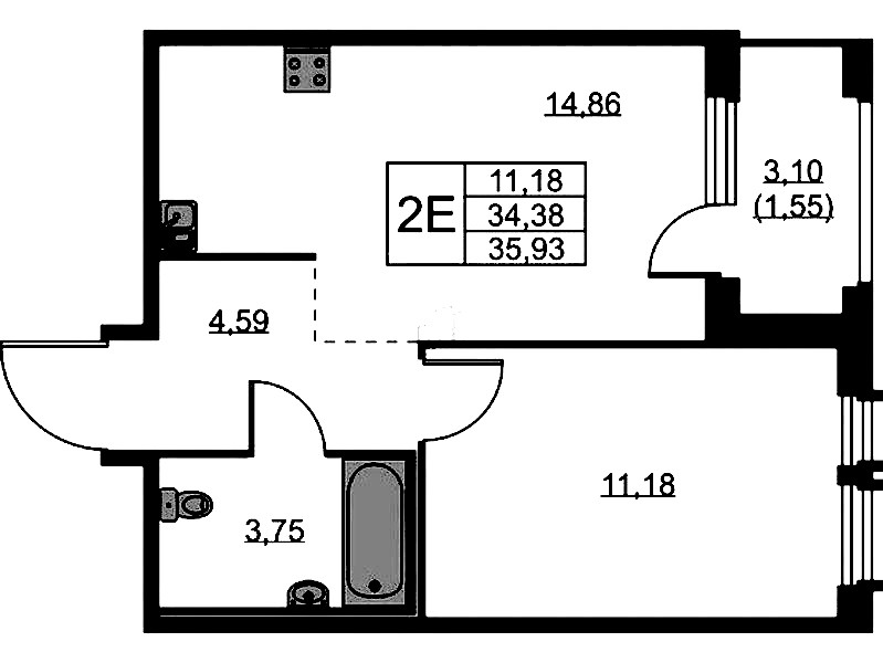 - Площадь35,93 м2
