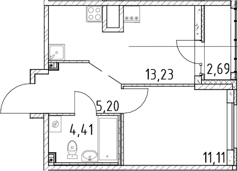 - Площадь кухни13,23 м2