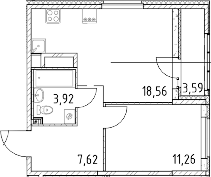 Однокомнатная квартира на 21-ом этаже 41,36 кв.м