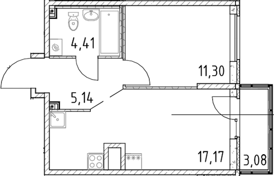 - Площадь кухни17,17 м2