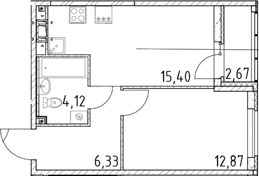 - Площадь кухни15,4 м2