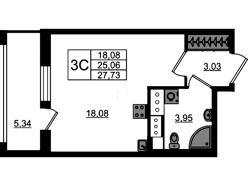 Квартира-студия на 20-ом этаже 25,06 кв.м