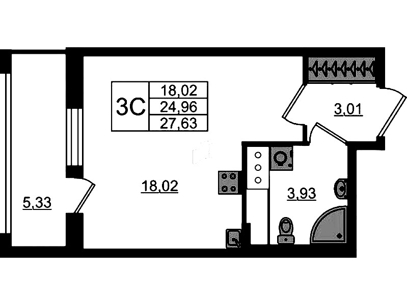 - Площадь24,96 м2