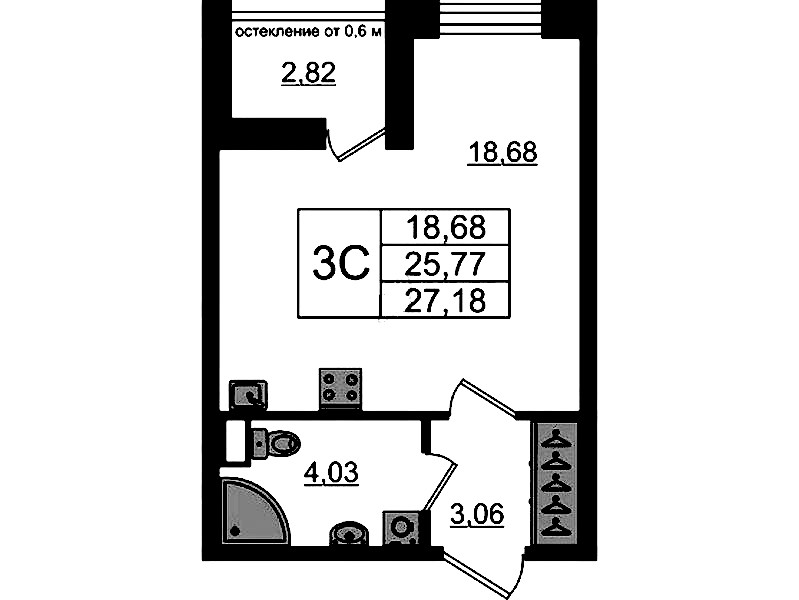 Квартира-студия на 2-ом этаже 25,77 кв.м