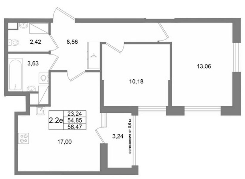 • Площадь54,85 м2