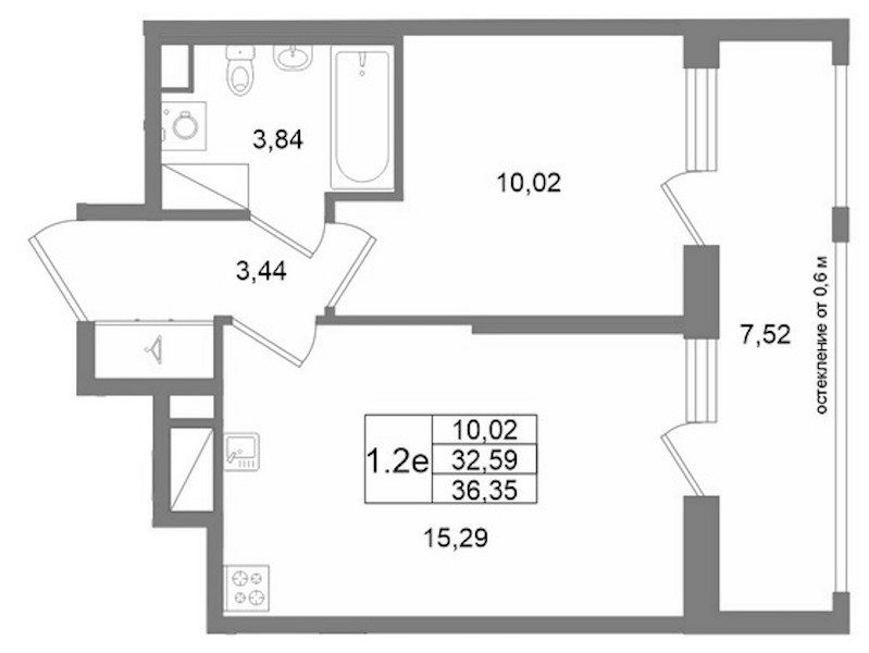- Площадь кухни15,22 м2