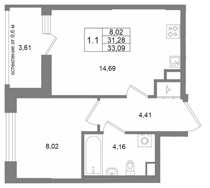 • Площадь31,28 м2