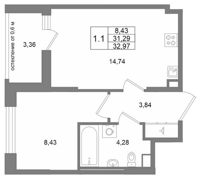 - Площадь31,29 м2