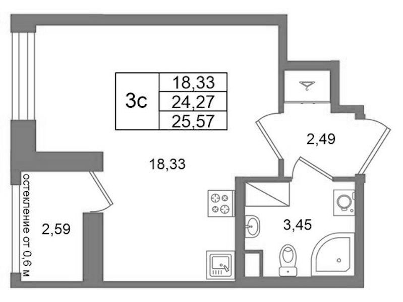 - Площадь24,27 м2