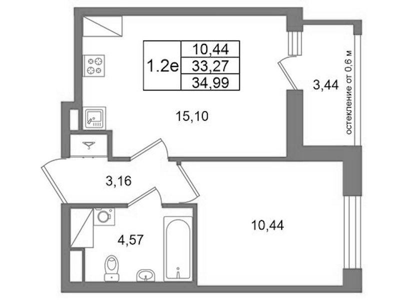 Однокомнатная квартира на 3-ем этаже 33,27 кв.м