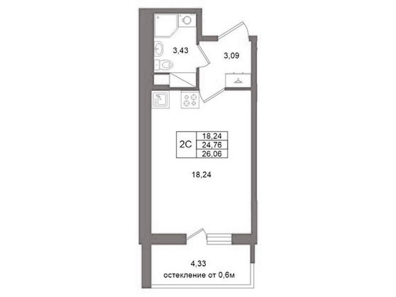 - Площадь24,76 м2