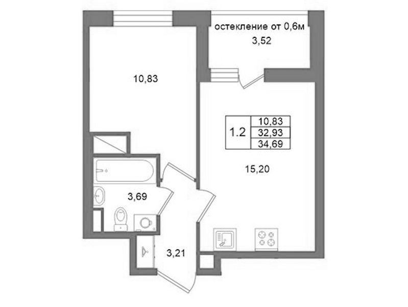 - Площадь кухни15,2 м2