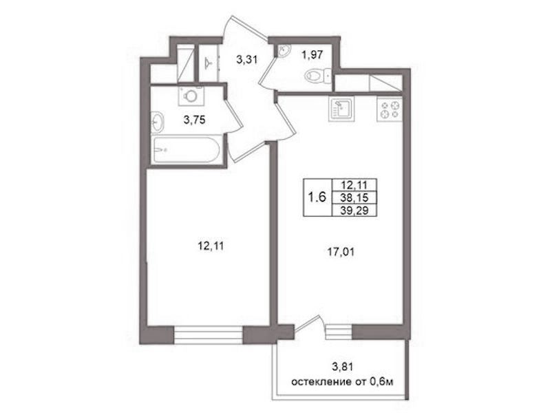 - Площадь38,15 м2