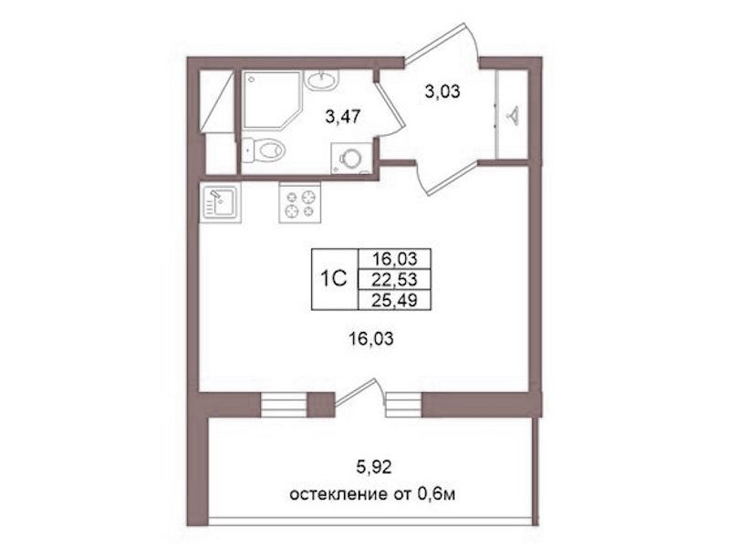 - Площадь22,53 м2