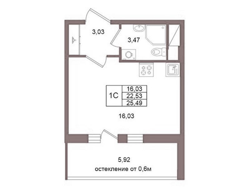 Квартира-студия на 10-ом этаже 22,53 кв.м