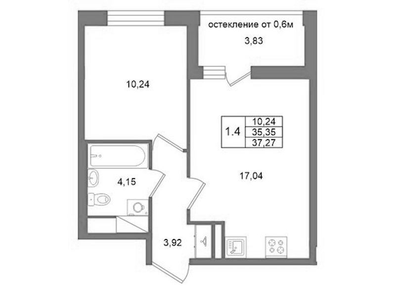 Однокомнатная квартира на 5-ом этаже 35,35 кв.м