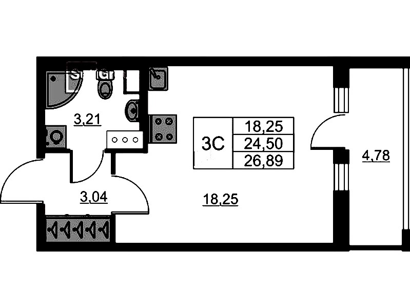 - Площадь24,5 м2